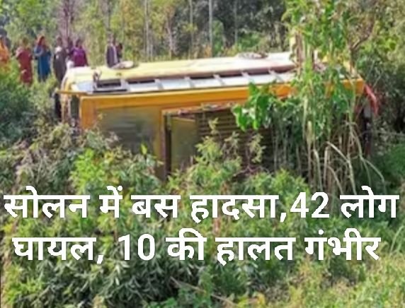 हिमाचल प्रदेश के सोलन जिले के बद्दी उपमंडल में सोमवार दोपहर एक दर्दनाक सड़क हादसा हुआ, जब एक निजी बस लुहारघाट के पास सड़क से फिसलकर खेतों में जा गिरी। हादसे के समय बस में करीब 42 यात्री सवार थे, जो सभी एक शादी समारोह में शामिल होने जा रहे थे। हादसे में 10 लोगों के गंभीर रूप से घायल होने की पुष्टि हुई है। सभी घायलों को तुरंत स्थानीय लोगों की मदद से एम्स बिलासपुर भेजा गया है, जहां उनका उपचार जारी है।