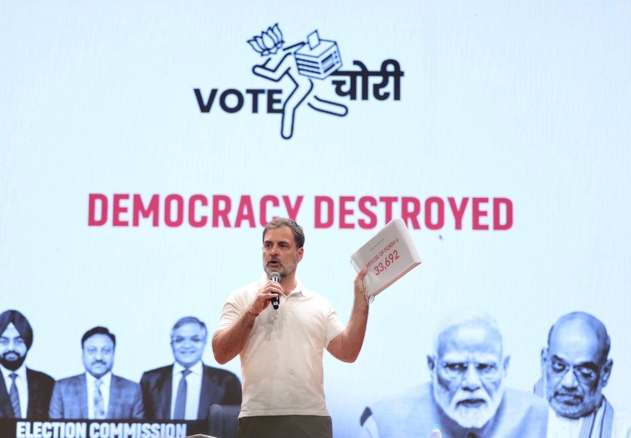 Highlighting discrepancies, Gandhi said many addresses listed in the voter rolls did not exist, and in several instances, dozens of voters were registered at the same address, which upon verification, turned out to be occupied by just one family. He also alleged misuse of Form 6, which is intended for first-time voters, to manipulate the voter database. He emphasized that when the party tried to verify voter lists, the Election Commission refused to provide digital rolls, further intensifying suspicion.