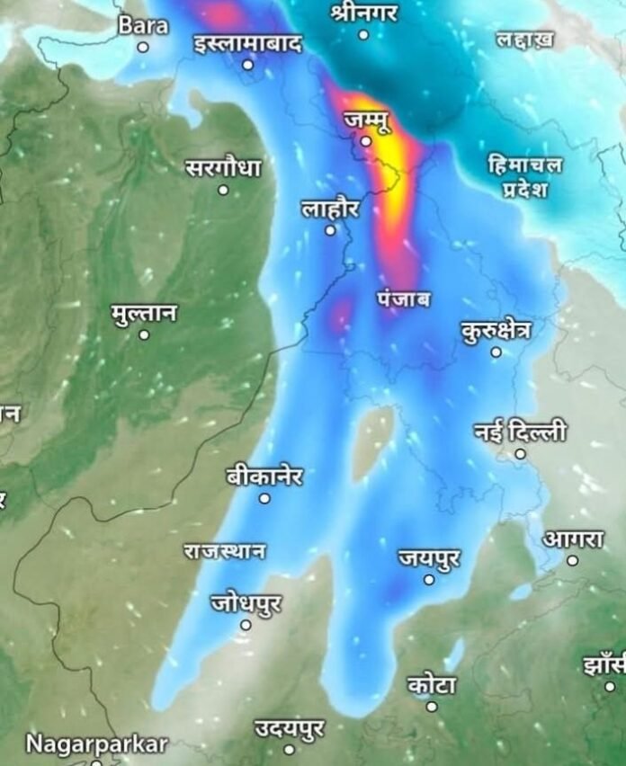 A highly unusual and extremely powerful weather system is currently influencing large parts of North India, creating intense and sharply defined patterns of rain and snowfall across the region. Meteorological maps and precipitation radar imagery indicate the presence of a strong Western Disturbance aligned with the upper-level jet stream, a combination that is rarely seen with such precision and intensity.