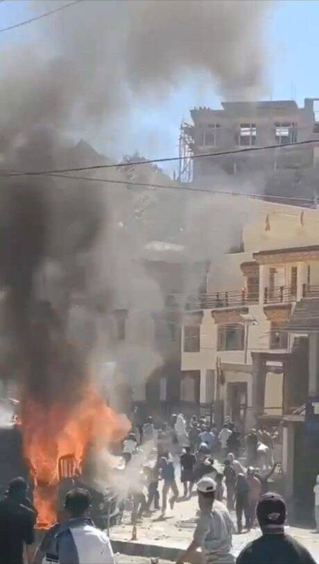 Massive protests erupted in Leh, Ladakh, on September 24, 2025, as demonstrators demanding statehood and inclusion under the Sixth Schedule clashed with authorities. The protests turned violent, with hundreds of people setting fire to the Bharatiya Janata Party (BJP) office and several vehicles. Flames and dark smoke clouds were visible from afar amid a complete shutdown in the Ladakh capital.